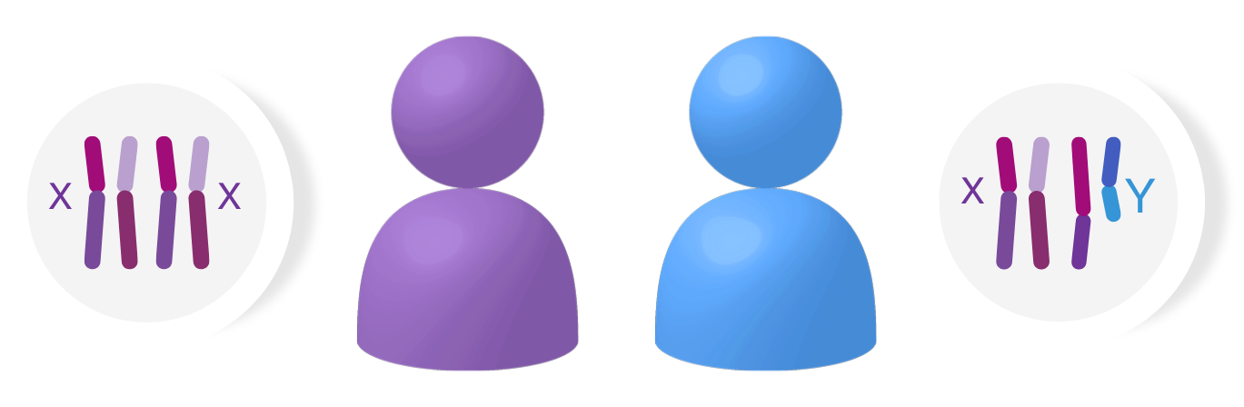 Les personnes de sexe féminin héritent un chromosome X de chaque parent (XX), tandis que les personnes de sexe masculin héritent toujours leur chromosome X de leur mère et leur chromosome Y de leur père (XY).
